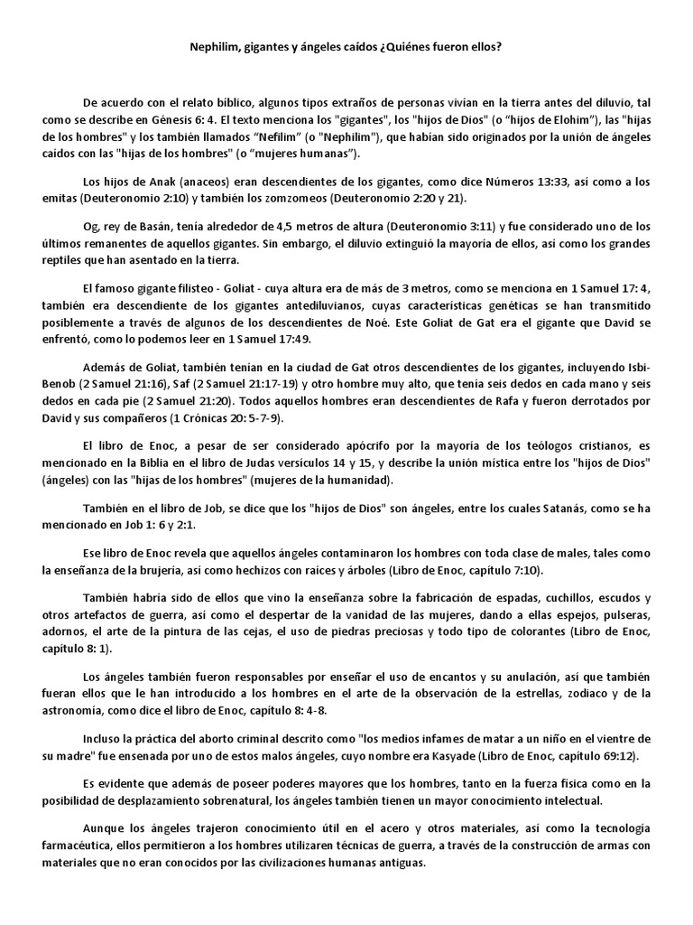 Su nombre se enumera en el seudoepigráfico libro de enoc como uno de los siete arcángeles (20:4), el cual mostró a henoc el fuego que guía las luminarias del cielo (23:4). Por último, la sentencia de los asociados de semyazza es descrita. Y a miguel dijo el señor: El libro de enoc completo pdf enoc nació siete generaciones después de adán , por lo que fue un contemporáneo aproximado de lamec de la línea de caín. Raguel no se menciona en las escrituras canónicas de la biblia. Sólo una breve oración, "enoc caminó fielmente con dios", en génesis 5:22 y repetida en génesis 5:24 revela por qué era tan especial para su creador. Su nombre significa amigo de dios o deseo de dios.